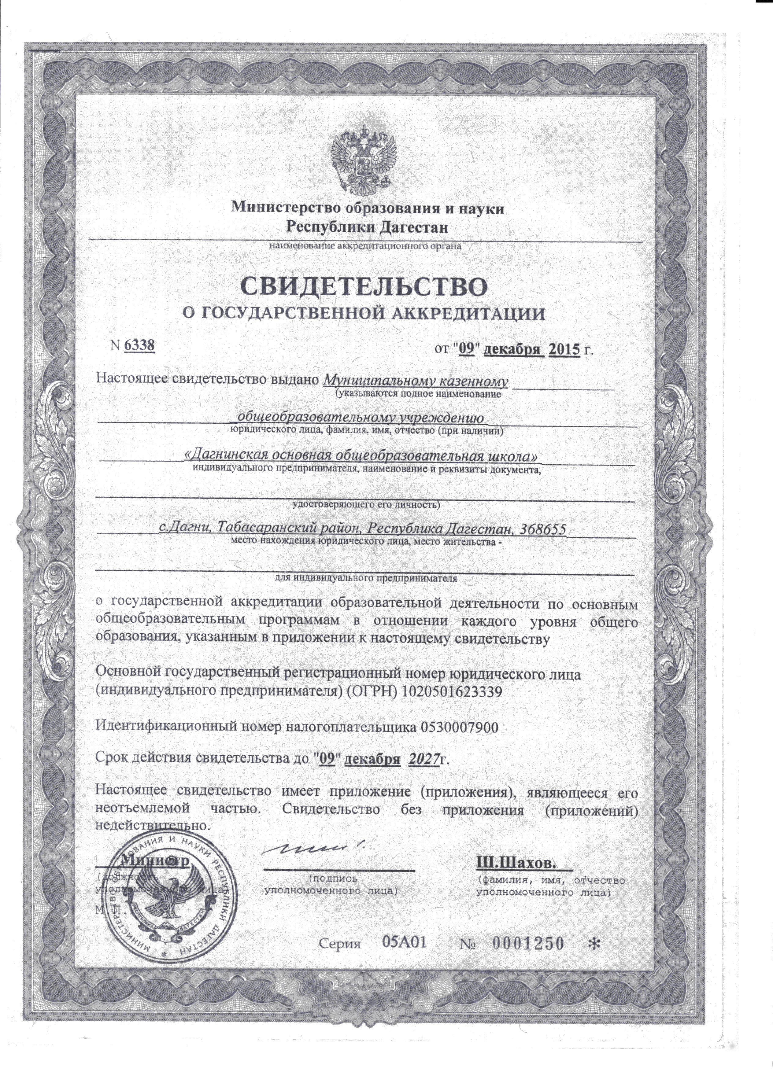 Полное наименование образовательной организации* Муниципальное казенное общеобразовательное учреждение "Дагнинская основная общеобразовательная школа"